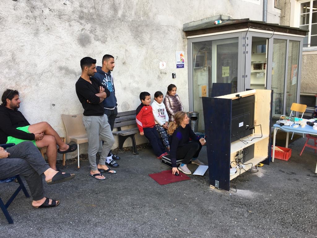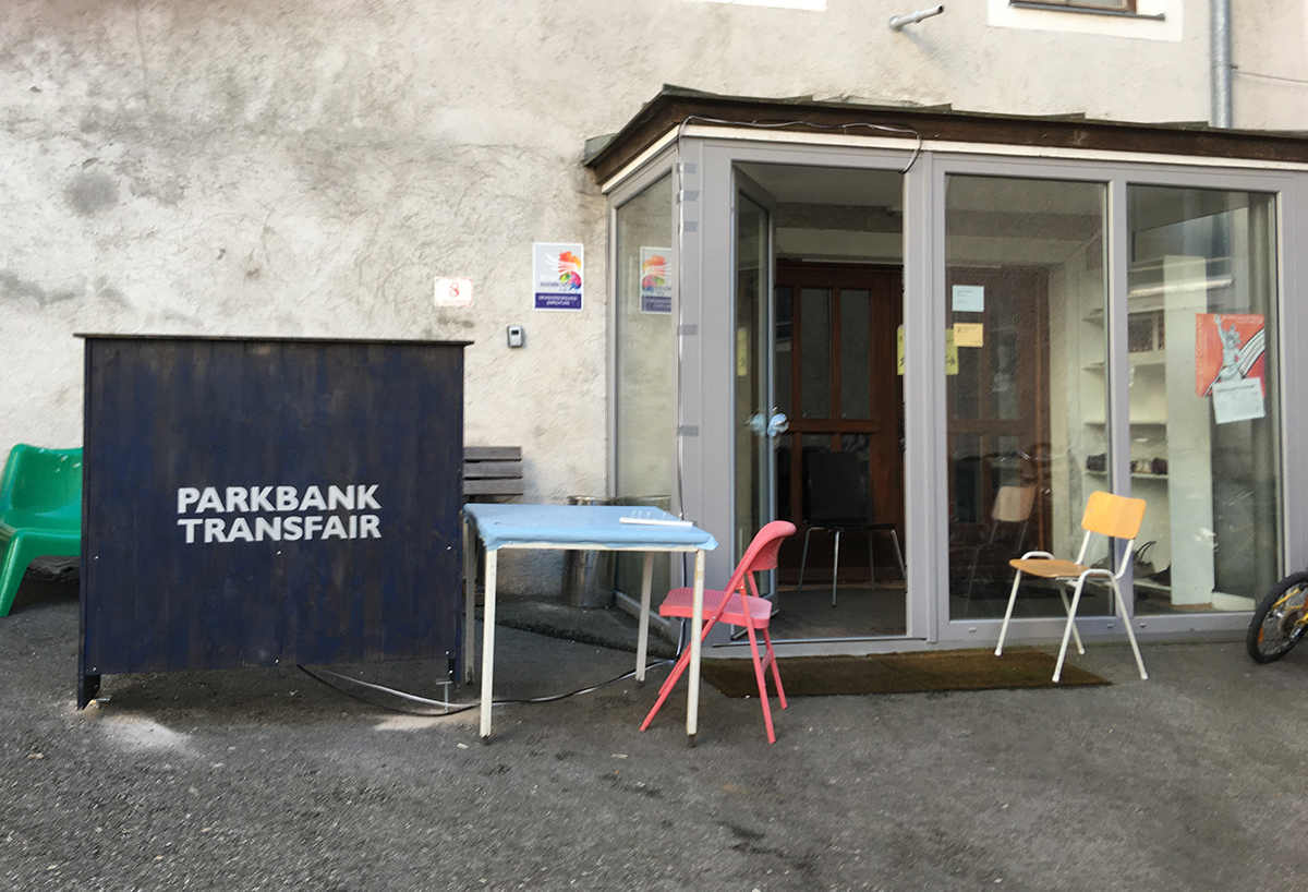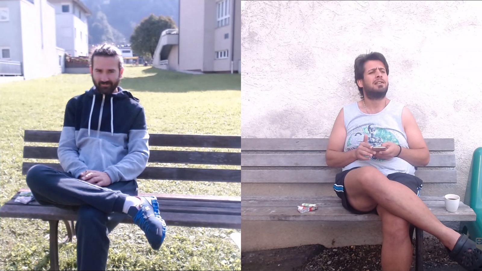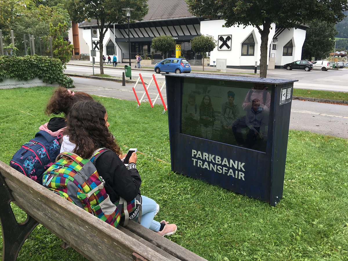 The video installation Parkbank Transfair will run in Volders between September 26, 2020 and October 10, 2020. A bench on the meadow between the village’s central restaurant “Bräu” and the elementary school and another bench in front of the peripheral refugee home are connected via video. Using video live streaming, it is possible to take a seat next to each other on the two spatially separated benches.