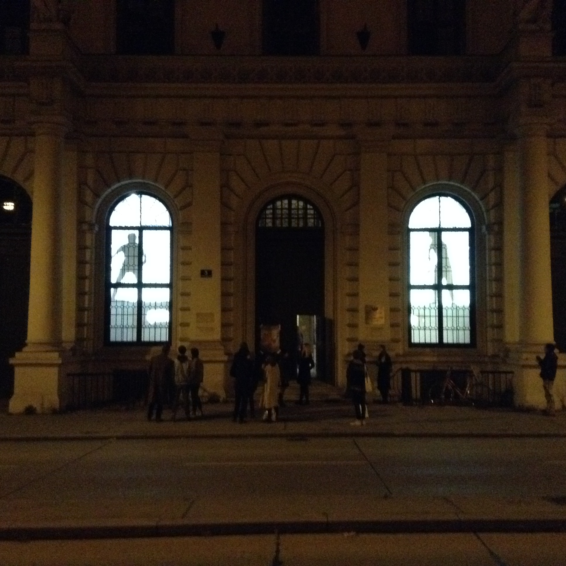Prolog#1_Public seeing_Video Projection_in collaboration with KUNSTtransPORT and Johanna Huter, Carmen Fetz, Johannes Bodner, Matthias Nicolussi-Castellan; at Haller Night Seeing_24/10/2014